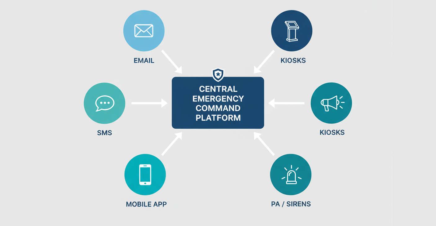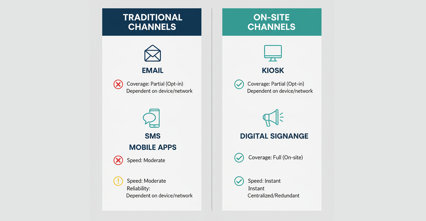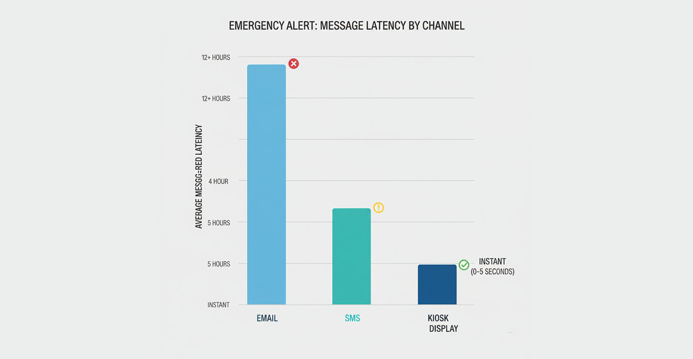 The most resilient universities now use multi-channel alert ecosystems where kiosks act as the visible, public layer complementing digital notifications.