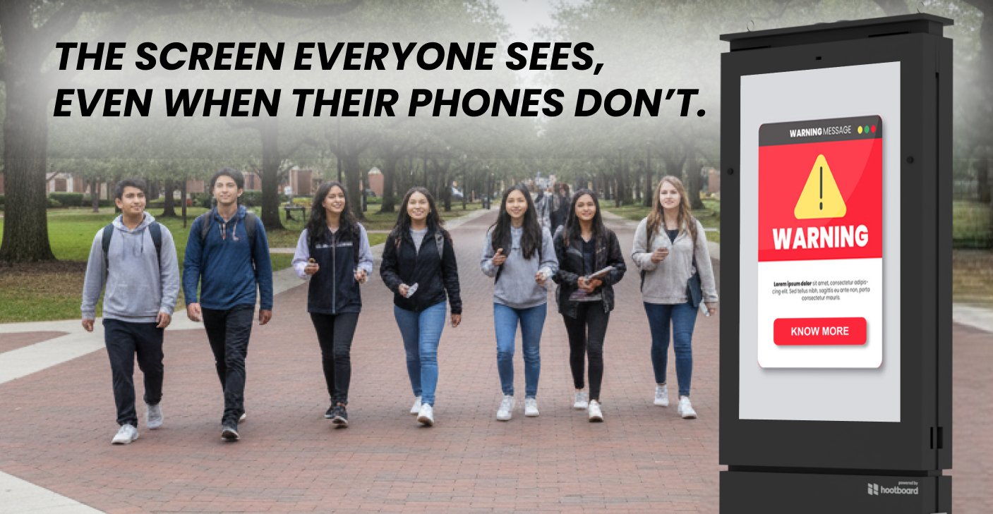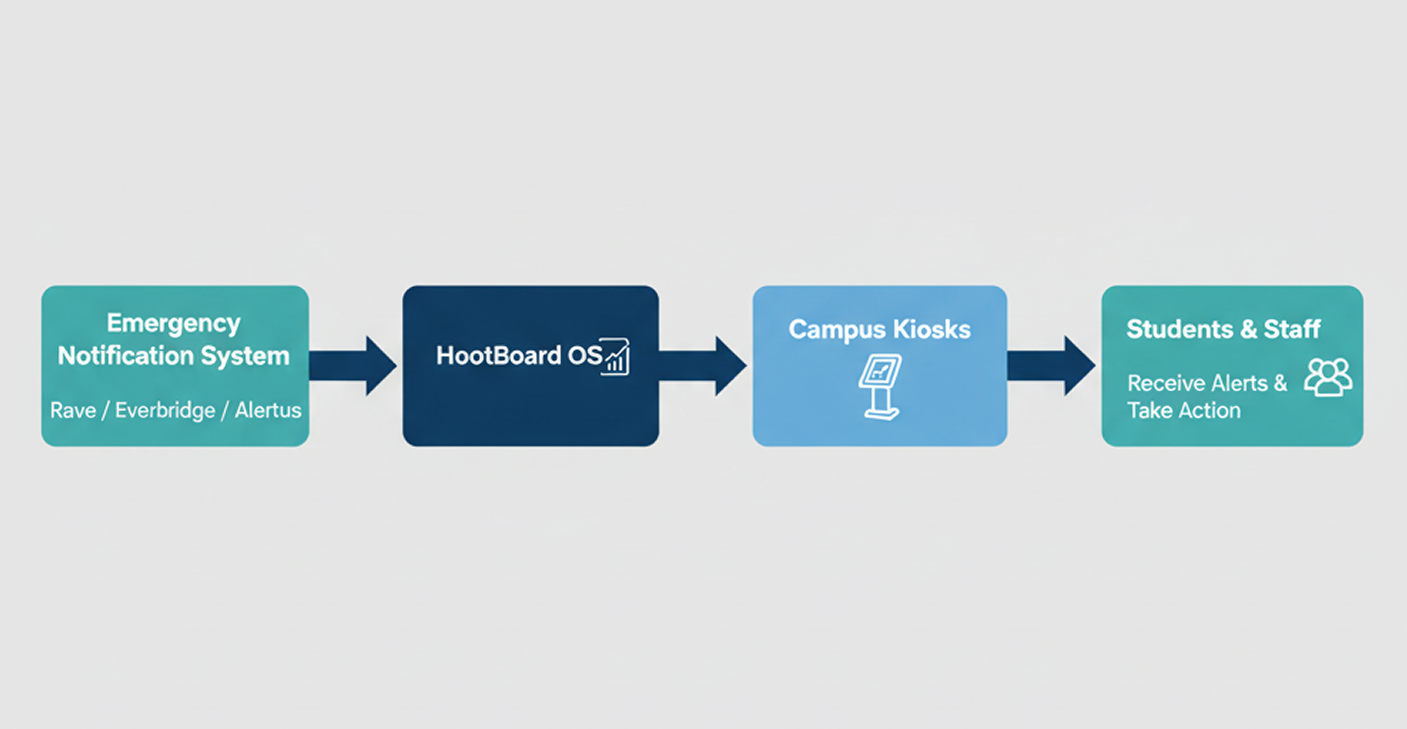 Through integrations with campus safety platforms like Rave Alert, Everbridge, or Alertus, HootBoardās smart kiosks act as real-time extensions of existing systems.